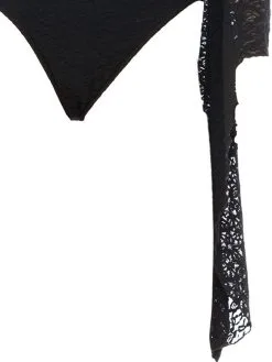 - Bodysuit has feature lacy high neckline plus lacy sleeves with long draped pieces