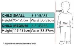 - Jumpsuit has fibre filled chest piece plus attached foam gauntlets and foam knee pads