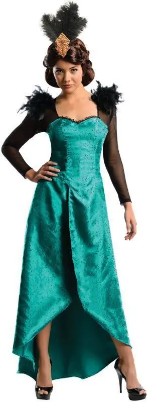 Turn your daughter into the ruler of Oz with this Teen Deluxe Evanora Oz the Great and Powerful Costume. She’ll feel like an all powerful witch this Halloween, as evil as they come. The outfit comes with a turquoise dress that is full length and features a small slit at the bottom. The dress also features black sheer sleeves that make the dress look very elegant.