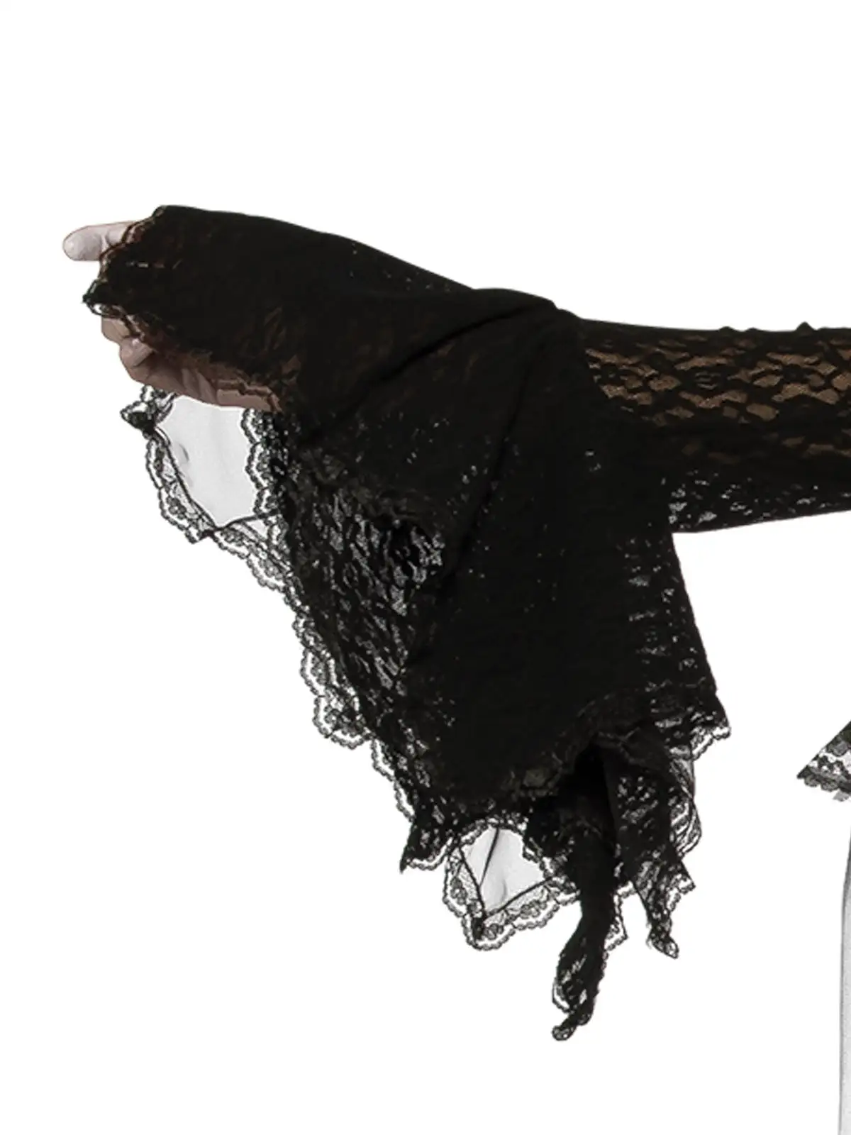 - Pair of lacy, stretchy black gauntlets to elbow high