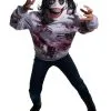 - Mask is soft foam backed with printed stitching details and facial features, plus an elastic strap to secure