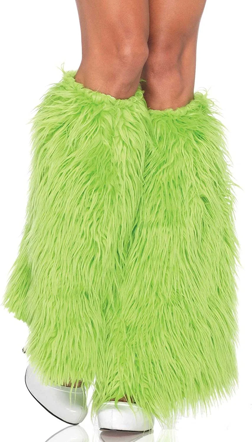 - 1 pair furry neon green leg warmers