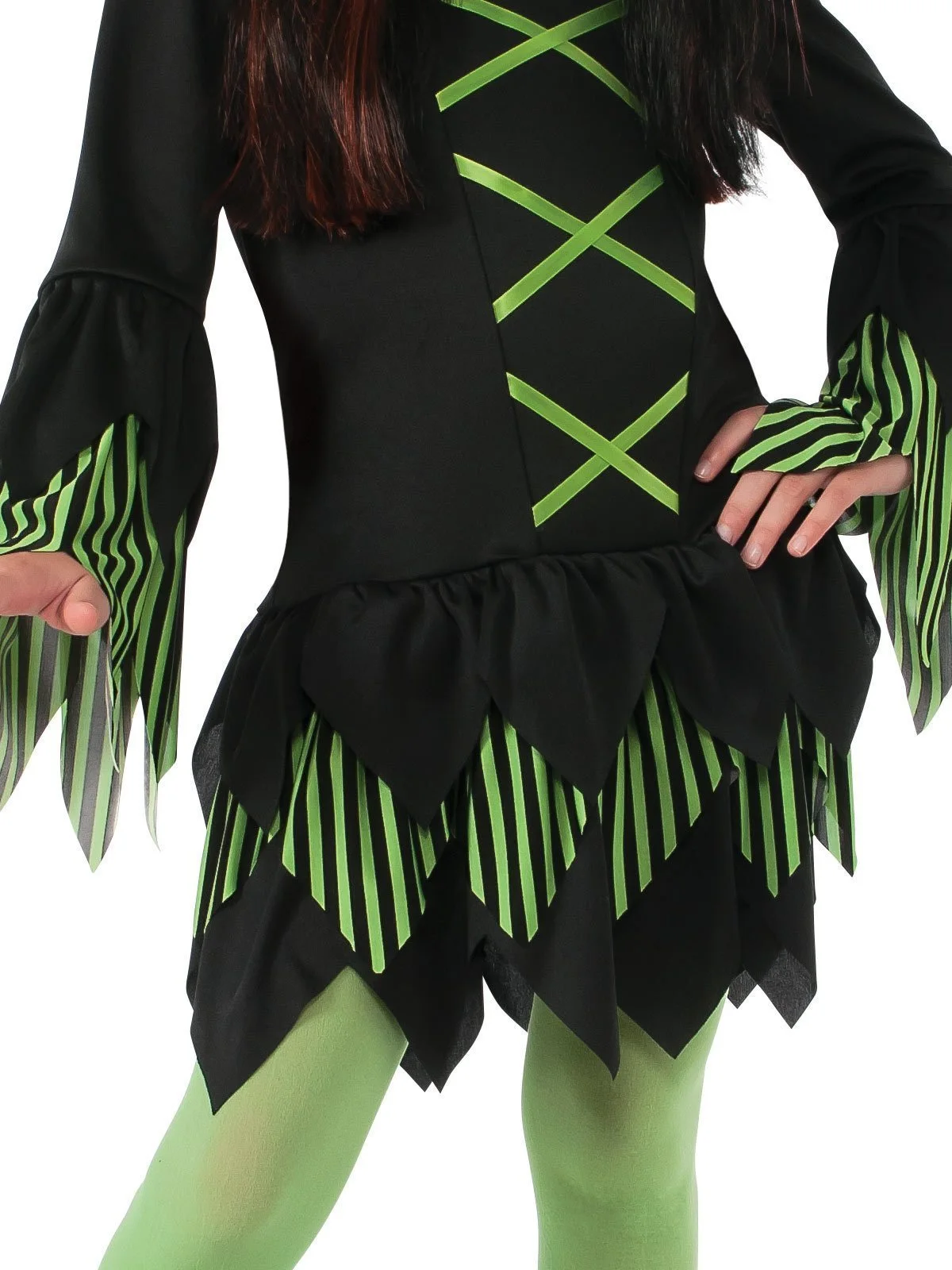 Hubble, bubble, toil and trouble…  Mix your eye of newt with your slime of toad, to cast your spell in your magic cauldron. Then you can cackle your way into the night sky as you fly off on your broomstick for some mischief and mayhem.  Are you a good witch or a wicked witch?  Maybe your black cat will even join you for the ride. This is the perfect outfit for Halloween or a Book Week dress up day!