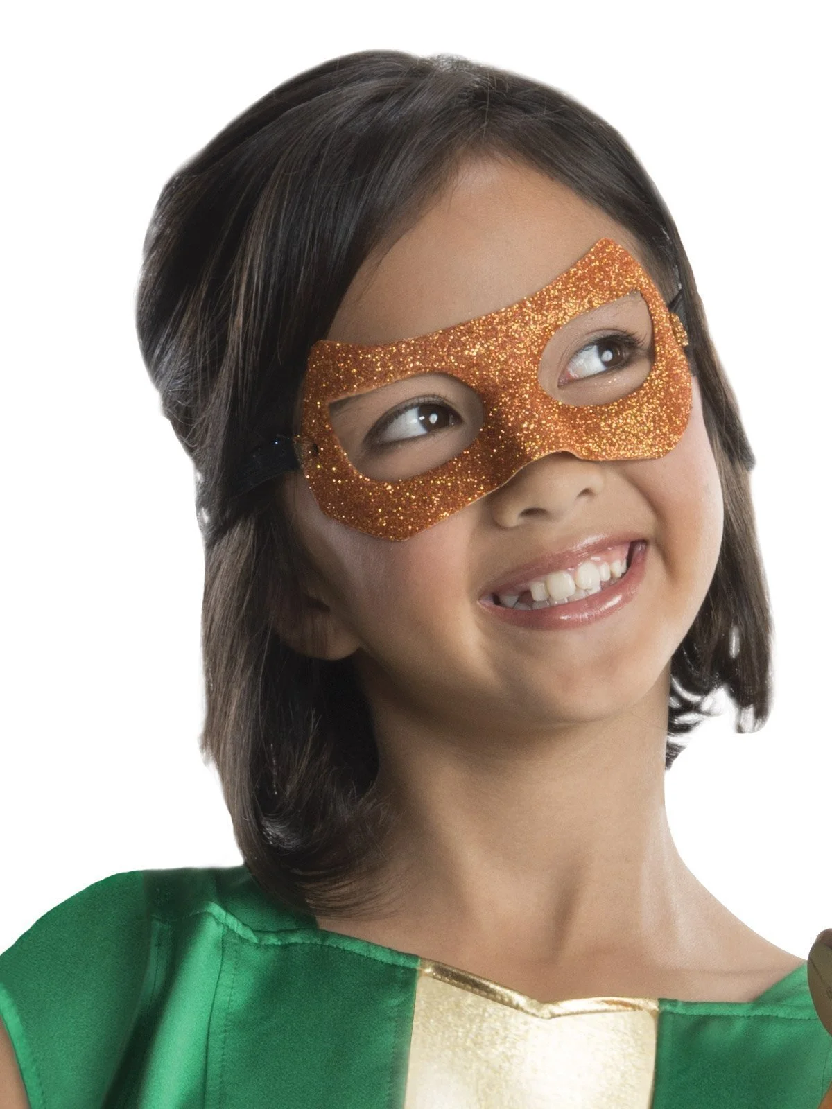 - Two shiny fabric gauntlets and glittery eye mask with elastic strap