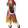 - 100% polyester, exclusive of decorationIvory dress with ruffle drape at shoulder and down side of dressAttached black and gold belt matches trim at bottom of gownElastic in back of waistPlastic medallion come with safety pin to attach at the shoulder (optional)Black and gold headband with elastic straps
