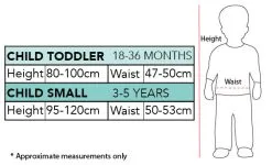 - Top has velcro tabs at rear and sits just above knee height