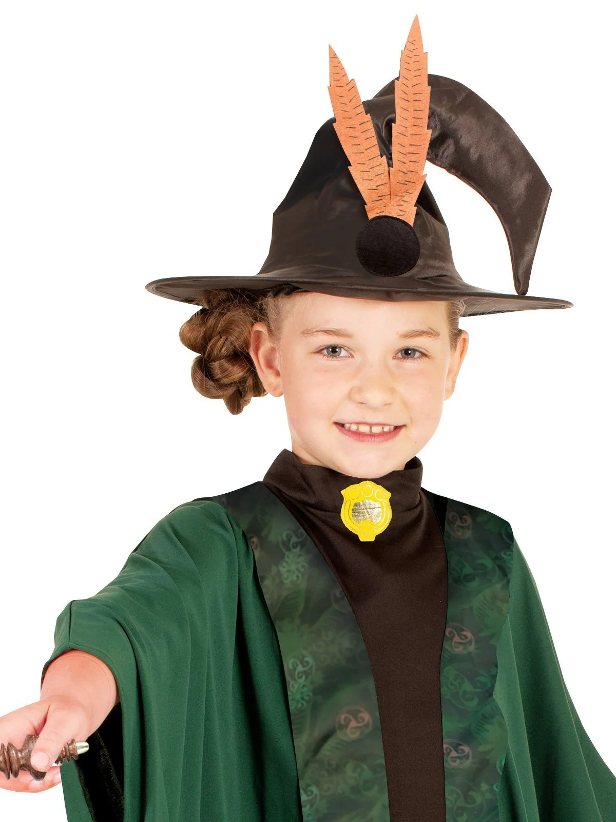 Professor Minerva McGonagall was a Scottish half-blood witch, the only daughter of Muggle Robert McGonagall and witch Isobel Ross. She was a registered Animagus who attended Hogwarts School of Witchcraft and Wizardry and was Sorted into Gryffindor House (but it took the sorting hat five and a half minutes to decide if she was Gryffindor or Ravenclaw, which made her a Hatstall). After her education, Minerva worked for two years at the Ministry of Magic and later returned to Hogwarts, where she became Head of Gryffindor House, Transfiguration professor and Headmistress of Hogwarts. She was also a member of the Order of the Phoenix. Played by actor Maggie Smith, don the magical hat of Professor McGonagall and see what magic it brings you.