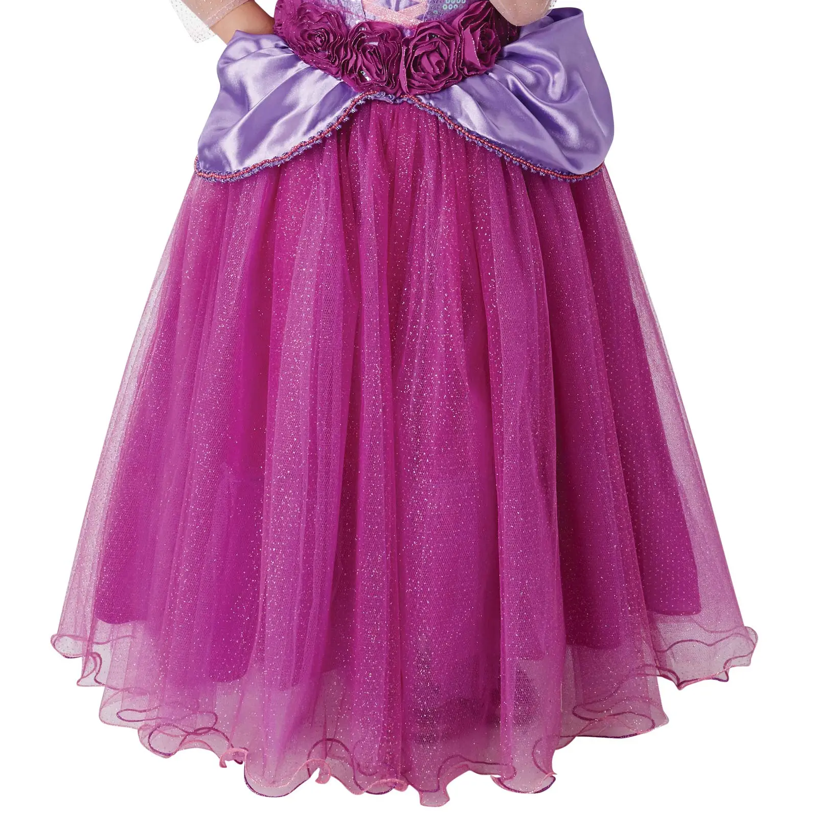 - Ornate dress with stunning sequin embellished torso, laced ribbon and character art plus puffy capped sleeves through to 3/4 mesh sleeves