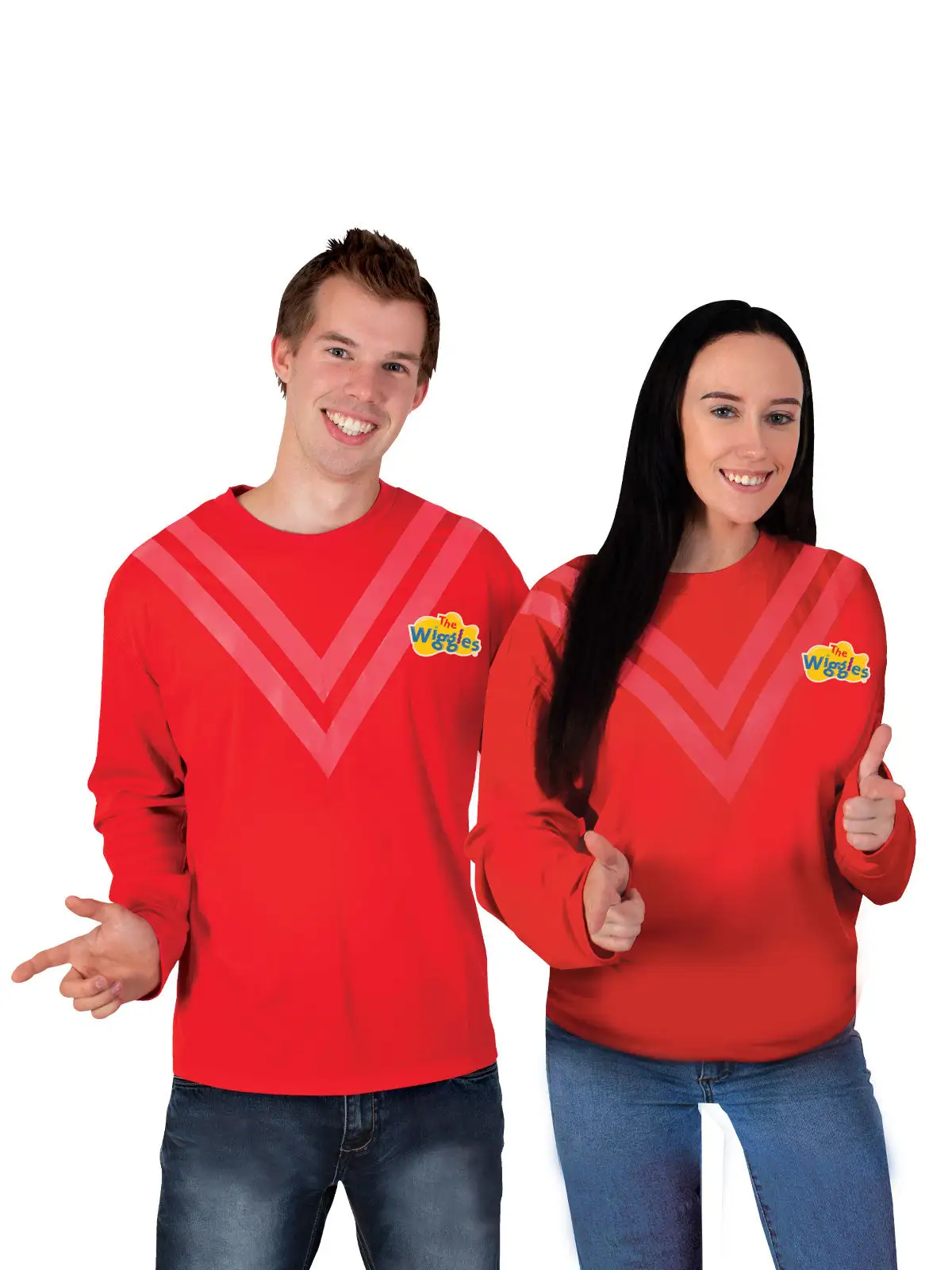 Hey, it’s the red Wiggle, known for singing, dancing and playing the guitar! Red Wiggle is a member of the popular Australian pre-school entertainers The Wiggles, alongside his other colourful friends. This popular red shirt is worn by male and female entertainers, including Simon and Caterina. They perform alongside friends Henry the Octopus, Wags the Dog, Captain Feathersword, Dorothy the Dinosaur and Shirley Shawn the Unicorn. The Red Wiggle performs on television, youtube and other media as well as in Live Wiggly concerts, enjoyed all around the world. You can wear this skivvy and start singing all the famous Wiggly fun tunes
