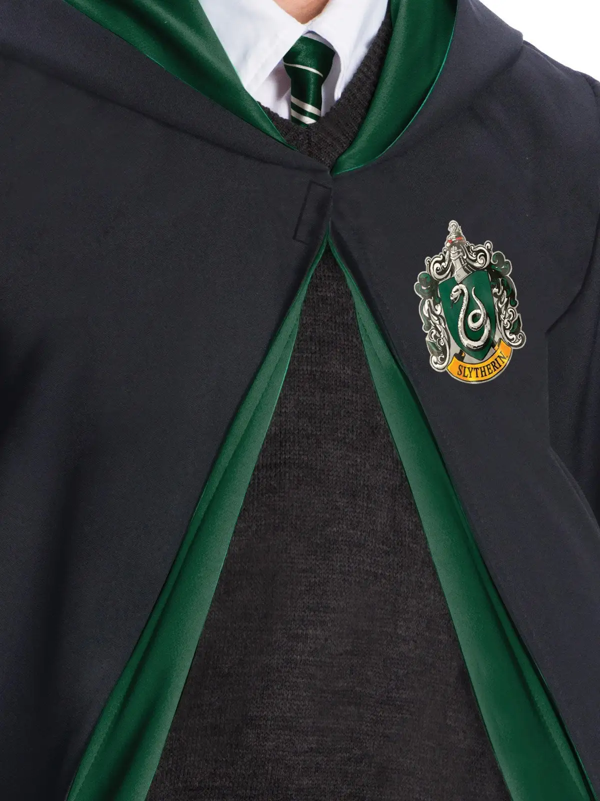 - Attached hood with lining in house colours that extends down front of robe
