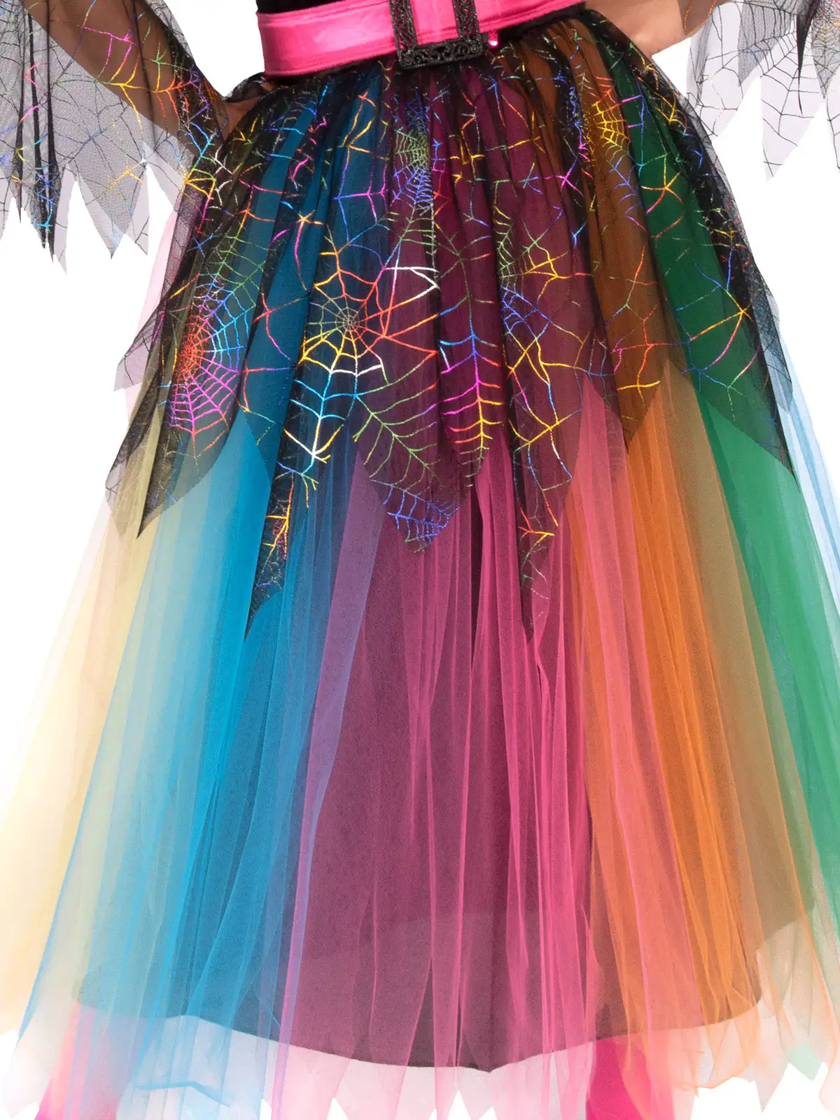- Dress with rainbow glitter web design on the skirt peplum and bodice panel, and also the tulle sleeves cuffs