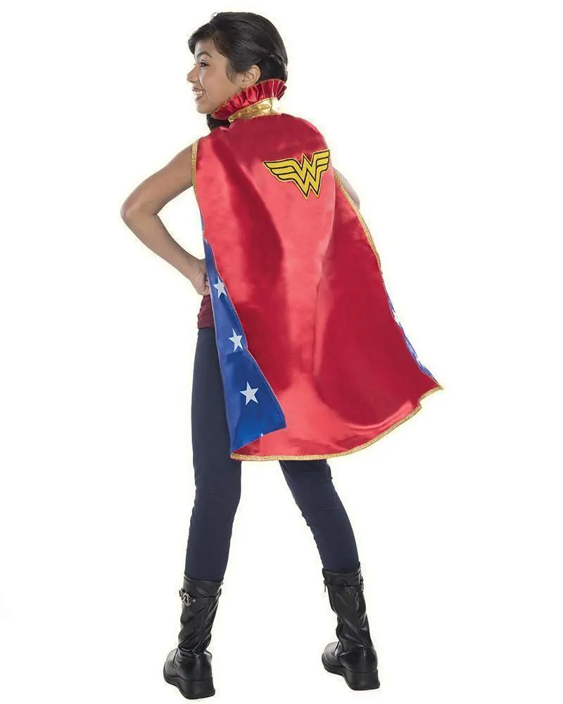Add a touch more magic to your Wonder Woman look with this special cape. As well as the famous logo on the back, it has a gathered ruff for a collar and stars lining the inside…
