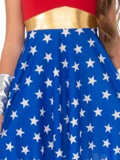 - Tutu Dress with Wonder Woman logo on bodice and nylon blue skirt with printed white stars