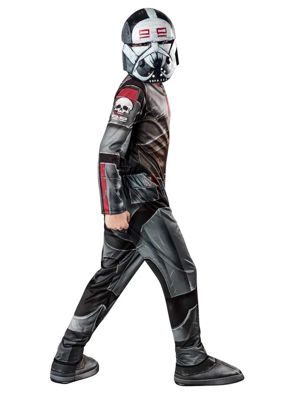 - Mask is moulded plastic with iconic Bad Batch red painted markings and eye holes cut out to see through. Mask has an elastic strap to secure